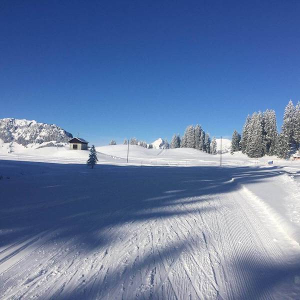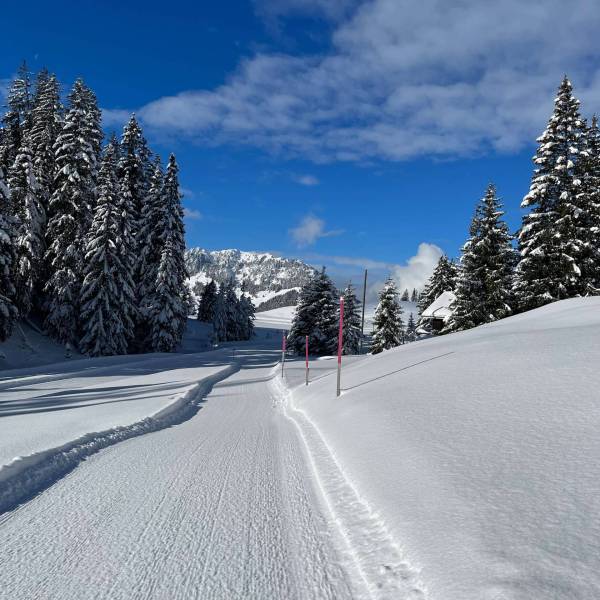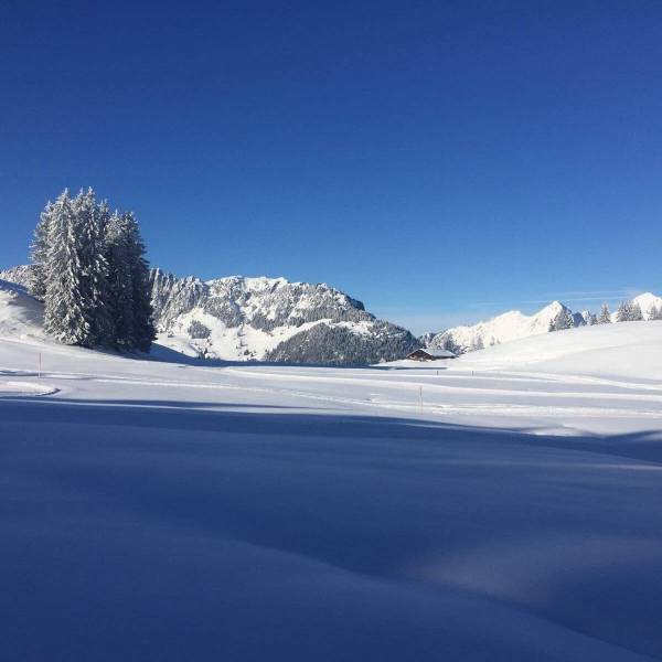Der Jaunpass liegt auf 1500 Metern über Meer und ist eingebettet in eine sanfte Passlandschaft, die von der markanten, scharf gezackten Gastlosenkette umrahmt wird. Dieses Gebiet gilt als echtes Paradies für Langläuferinnen und Langläufer, da es durch seine besondere Schneesicherheit ideale Bedingungen für den Langlaufsport bietet.
